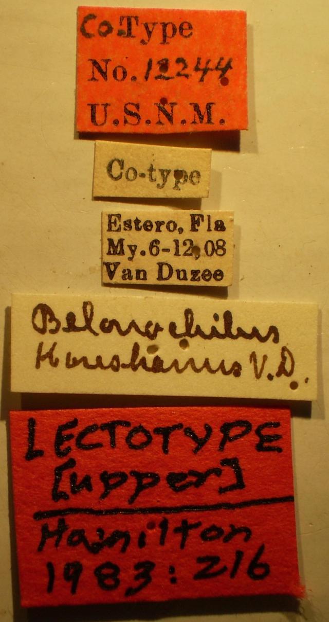 Belanochilus koreshanus - Lectotype labels (NMNH) - (CC BY-NC 3.0) - Photo by Pablo M. Dellapé with permission from the National Museum of Natural History (NMNH), Smithsonian Institution, Washington, D.C.