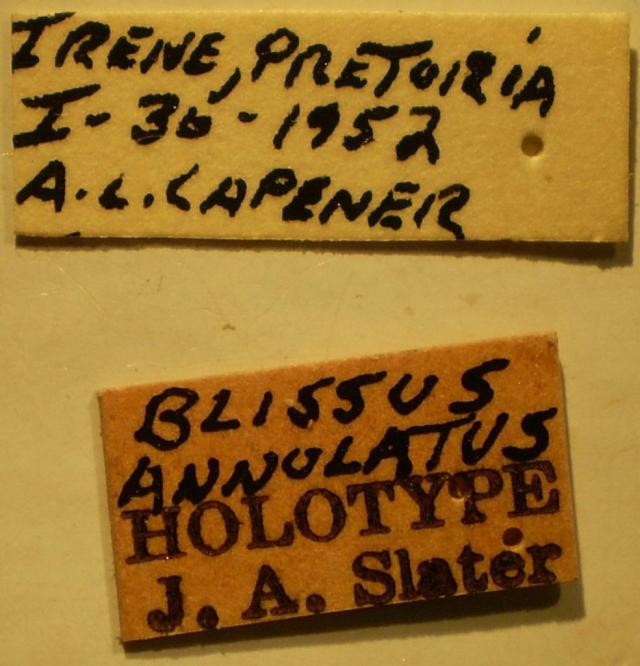 Blissus annulatus - Holotype Labels (NMNH) - (CC BY-NC 3.0) - Photo by Pablo M. Dellapé with permission from the National Museum of Natural History (NMNH), Smithsonian Institution, Washington, D.C.