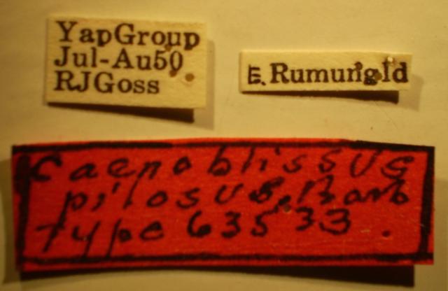 Caenoblissus pilosus - Holotype Labels (NMNH) - (CC BY-NC 3.0) - Photo by Pablo M. Dellapé with permission from the National Museum of Natural History (NMNH), Smithsonian Institution, Washington, D.C.