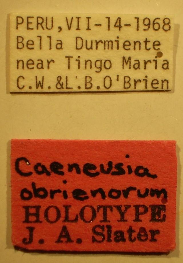 Caenusia obrienorum - Holotype Labels (NMNH) - (CC BY-NC 3.0) - Photo by Pablo M. Dellapé with permission from the National Museum of Natural History (NMNH), Smithsonian Institution, Washington, D.C.