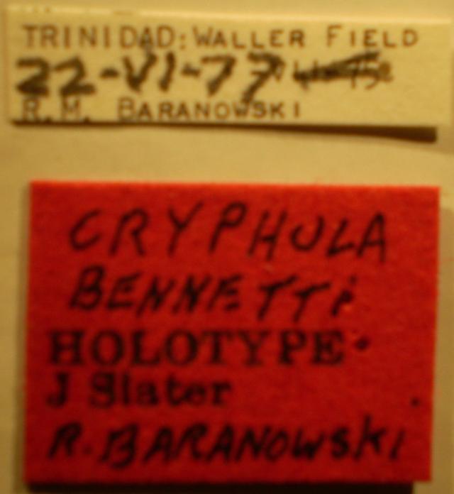 Cryphula bennetti - Holotype Labels (NMNH) - (CC BY-NC 3.0) - Photo by Pablo M. Dellapé with permission from the National Museum of Natural History (NMNH), Smithsonian Institution, Washington, D.C.