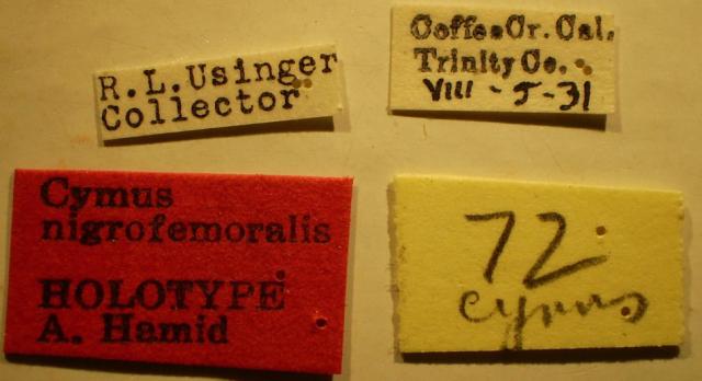 Cymus nigrofemoralis - Holotype Labels (NMNH) - (CC BY-NC 3.0) - Photo by Pablo M. Dellapé with permission from the National Museum of Natural History (NMNH), Smithsonian Institution, Washington, D.C.