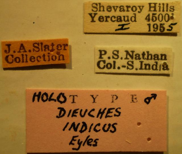 Dieuches indicus - Holotype Labels (NMNH) - (CC BY-NC 3.0) - Photo by Pablo M. Dellapé with permission from the National Museum of Natural History (NMNH), Smithsonian Institution, Washington, D.C.