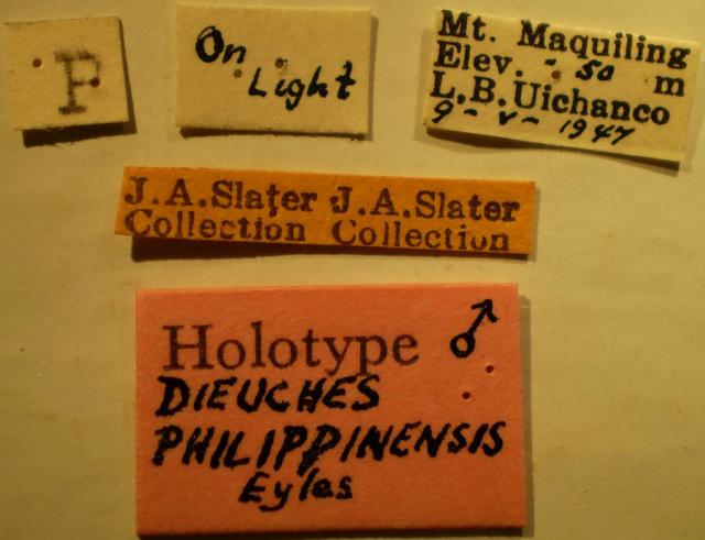 Dieuches philippinensis - Holotype Labels (NMNH) - (CC BY-NC 3.0) - Photo by Pablo M. Dellapé with permission from the National Museum of Natural History (NMNH), Smithsonian Institution, Washington, D.C.