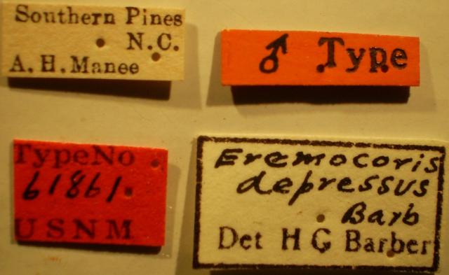 Eremocoris depressus - Holotype Labels (NMNH) - (CC BY-NC 3.0) - Photo by Pablo M. Dellapé with permission from the National Museum of Natural History (NMNH), Smithsonian Institution, Washington, D.C.