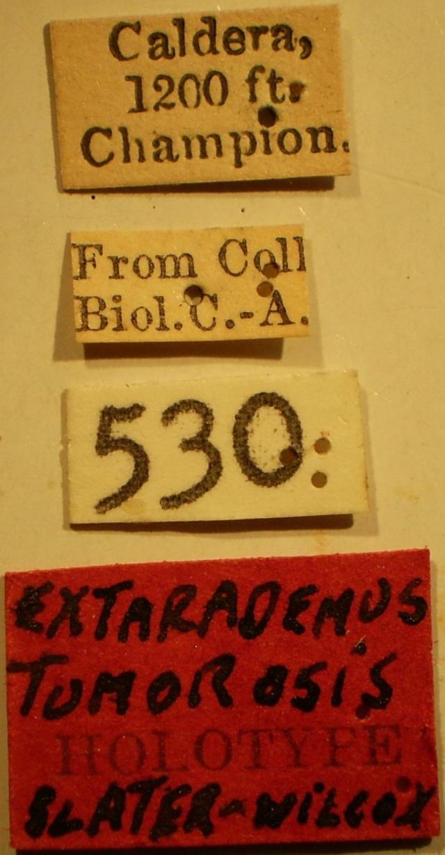 Extarademus tumorosis - Holotype Labels (NMNH) - (CC BY-NC 3.0) - Photo by Pablo M. Dellapé with permission from the National Museum of Natural History (NMNH), Smithsonian Institution, Washington, D.C.