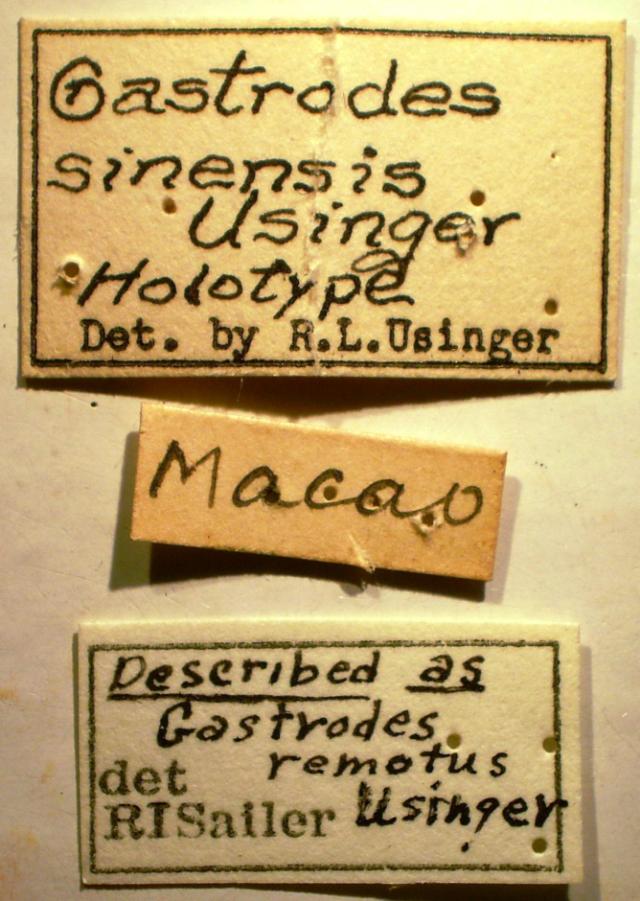 Gastrodes sinensis - Holotype Labels (NMNH) - (CC BY-NC 3.0) - Photo by Pablo M. Dellapé with permission from the National Museum of Natural History (NMNH), Smithsonian Institution, Washington, D.C.