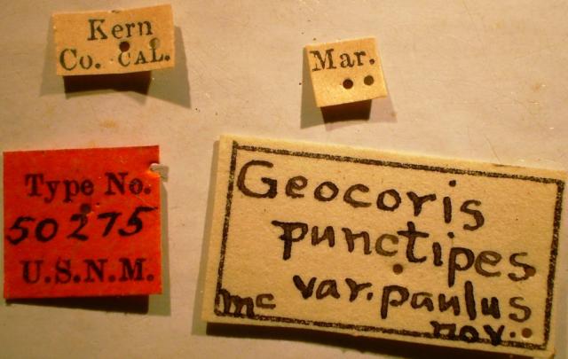 Geocoris punctipes paulus - Holotype Labels (NMNH) - (CC BY-NC 3.0) - Photo by Pablo M. Dellapé with permission from the National Museum of Natural History (NMNH), Smithsonian Institution, Washington, D.C.