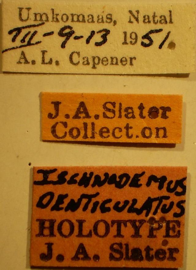 Ischnodemus denticulatus - Holotype Labels (NMNH) - (CC BY-NC 3.0) - Photo by Pablo M. Dellapé with permission from the National Museum of Natural History (NMNH), Smithsonian Institution, Washington, D.C.