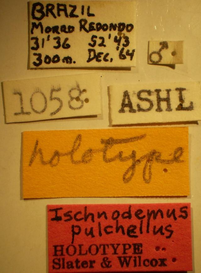 Ischnodemus pulchellus - Holotype Labels (NMNH) - (CC BY-NC 3.0) - Photo by Pablo M. Dellapé with permission from the National Museum of Natural History (NMNH), Smithsonian Institution, Washington, D.C.