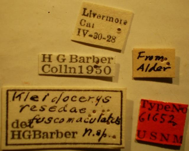 Kleidocerys resedae fuscomaculatus - Holotype Labels (NMNH) - (CC BY-NC 3.0) - Photo by Pablo M. Dellapé with permission from the National Museum of Natural History (NMNH), Smithsonian Institution, Washington, D.C.