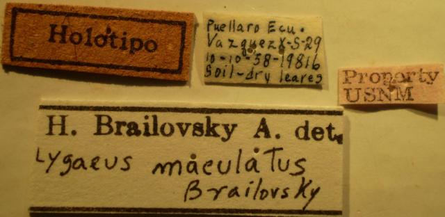 Lygaeus maculatus - Holotype Labels (NMNH) - (CC BY-NC 3.0) - Photo by Pablo M. Dellapé with permission from the National Museum of Natural History (NMNH), Smithsonian Institution, Washington, D.C.