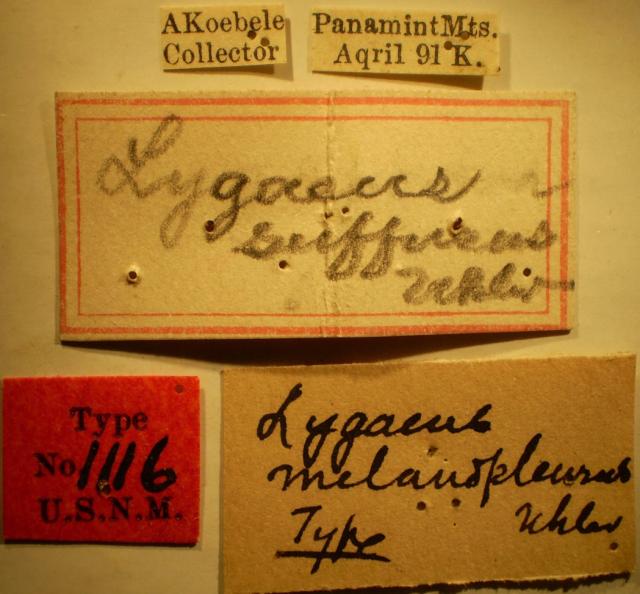 Lygaeus melanopleurus - Holotype Labels (NMNH) - (CC BY-NC 3.0) - Photo by Pablo M. Dellapé with permission from the National Museum of Natural History (NMNH), Smithsonian Institution, Washington, D.C.