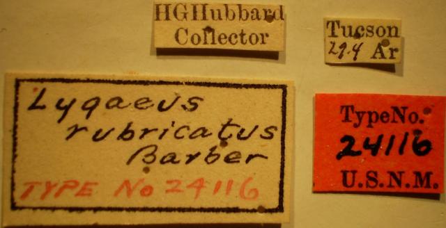 Lygaeus rubricatus - Holotype Labels (NMNH) - (CC BY-NC 3.0) - Photo by Pablo M. Dellapé with permission from the National Museum of Natural History (NMNH), Smithsonian Institution, Washington, D.C.