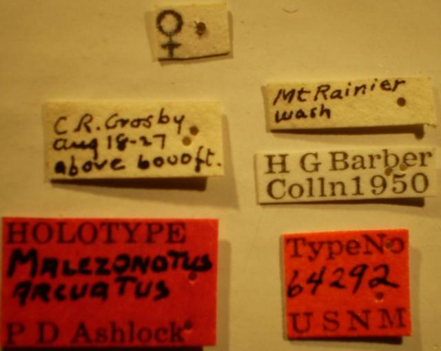 Malezonotus arcuatus - Holotype Labels (NMNH) - (CC BY-NC 3.0) - Photo by Pablo M. Dellapé with permission from the National Museum of Natural History (NMNH), Smithsonian Institution, Washington, D.C.
