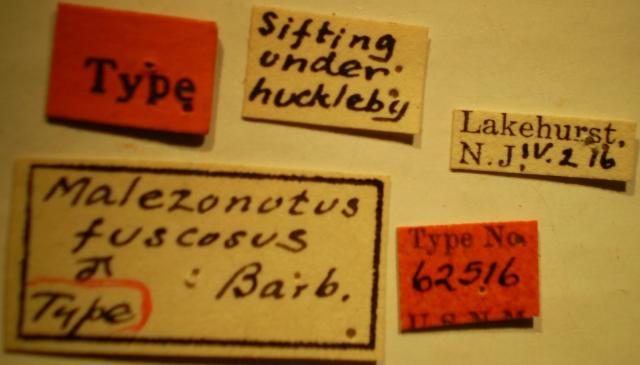 Malezonotus fuscosus - Holotype Labels (NMNH) - (CC BY-NC 3.0) - Photo by Pablo M. Dellapé with permission from the National Museum of Natural History (NMNH), Smithsonian Institution, Washington, D.C.