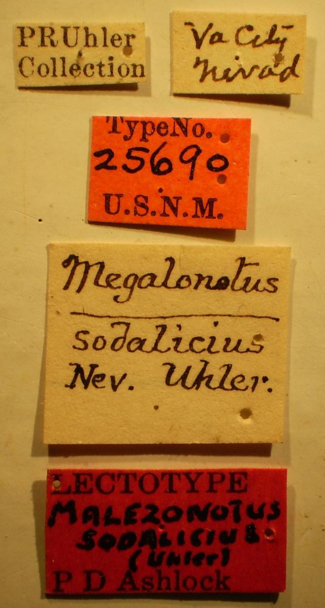 Megalonotus sodalicius - Lectotype Labels (NMNH) - (CC BY-NC 3.0) - Photo by Pablo M. Dellapé with permission from the National Museum of Natural History (NMNH), Smithsonian Institution, Washington, D.C.
