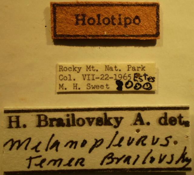 Melanopleurus temer - Holotype Labels (NMNH) - (CC BY-NC 3.0) - Photo by Pablo M. Dellapé with permission from the National Museum of Natural History (NMNH), Smithsonian Institution, Washington, D.C.