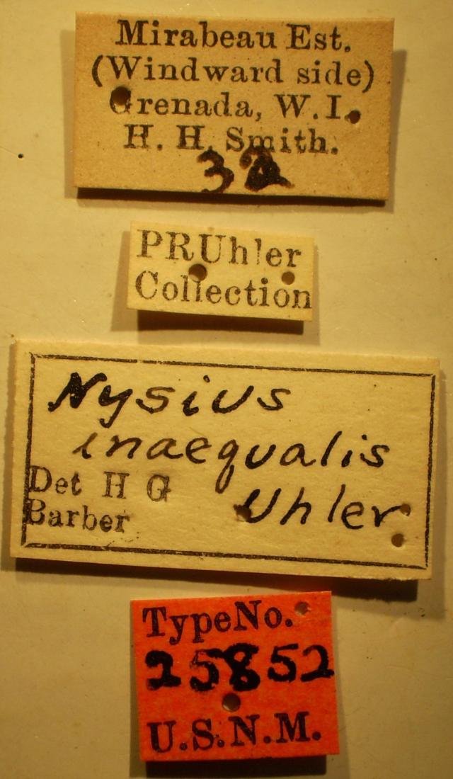 Nysius inaegualis Holotype (NMNH) - (CC BY-NC 3.0) - Photo by Pablo M. Dellapé with permission from the National Museum of Natural History (NMNH), Smithsonian Institution, Washington, D.C.