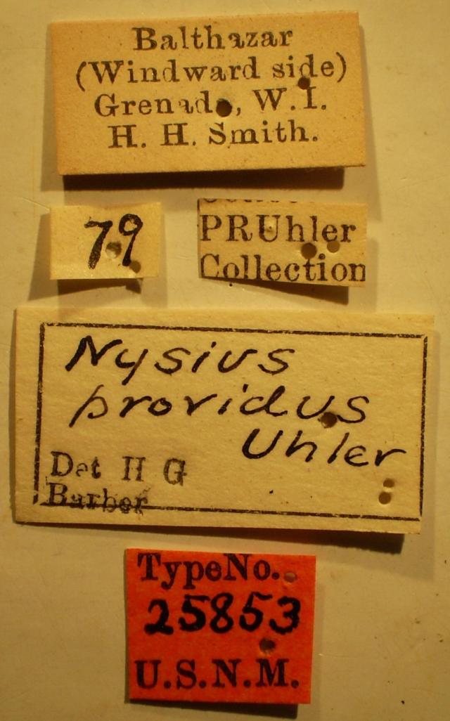 Nysius providus - Holotype Labels (NMNH) - (CC BY-NC 3.0) - Photo by Pablo M. Dellapé with permission from the National Museum of Natural History (NMNH), Smithsonian Institution, Washington, D.C.