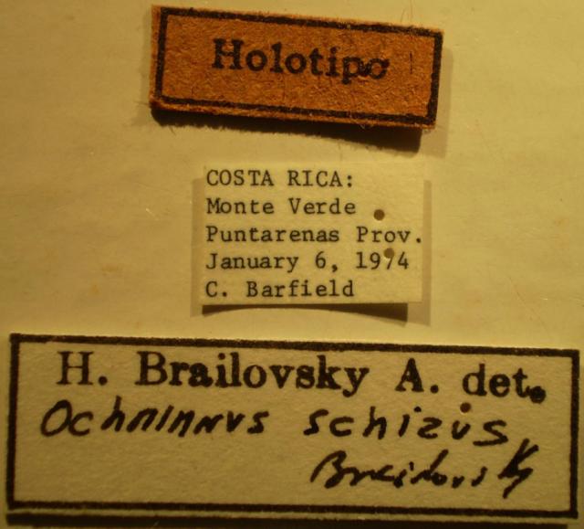 Ochrinnus schizus - Holotype Labels (NMNH) - (CC BY-NC 3.0) - Photo by Pablo M. Dellapé with permission from the National Museum of Natural History (NMNH), Smithsonian Institution, Washington, D.C.