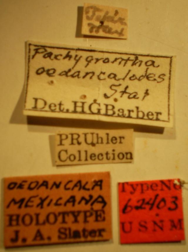 Oedancala mexicana - Holotype Labels (NMNH) - (CC BY-NC 3.0) - Photo by Pablo M. Dellapé with permission from the National Museum of Natural History (NMNH), Smithsonian Institution, Washington, D.C.