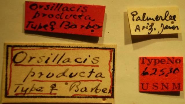 Orsillacis producta - Holotype Labels (NMNH) - (CC BY-NC 3.0) - Photo by Pablo M. Dellapé with permission from the National Museum of Natural History (NMNH), Smithsonian Institution, Washington, D.C.