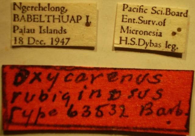 Oxycarenus rubiginosus - Holotype Labels (NMNH) - (CC BY-NC 3.0) - Photo by Pablo M. Dellapé with permission from the National Museum of Natural History (NMNH), Smithsonian Institution, Washington, D.C.