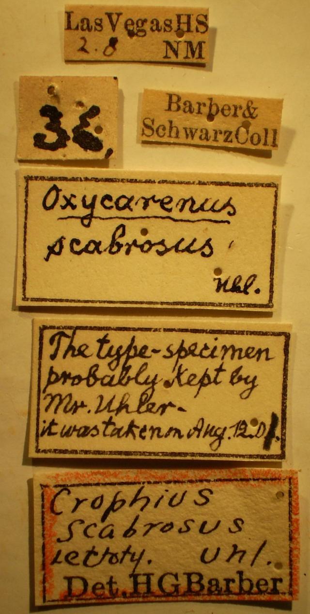 Oxycarenus scabrosus - Syntype Labels (NMNH) - (CC BY-NC 3.0) - Photo by Pablo M. Dellapé with permission from the National Museum of Natural History (NMNH), Smithsonian Institution, Washington, D.C.
