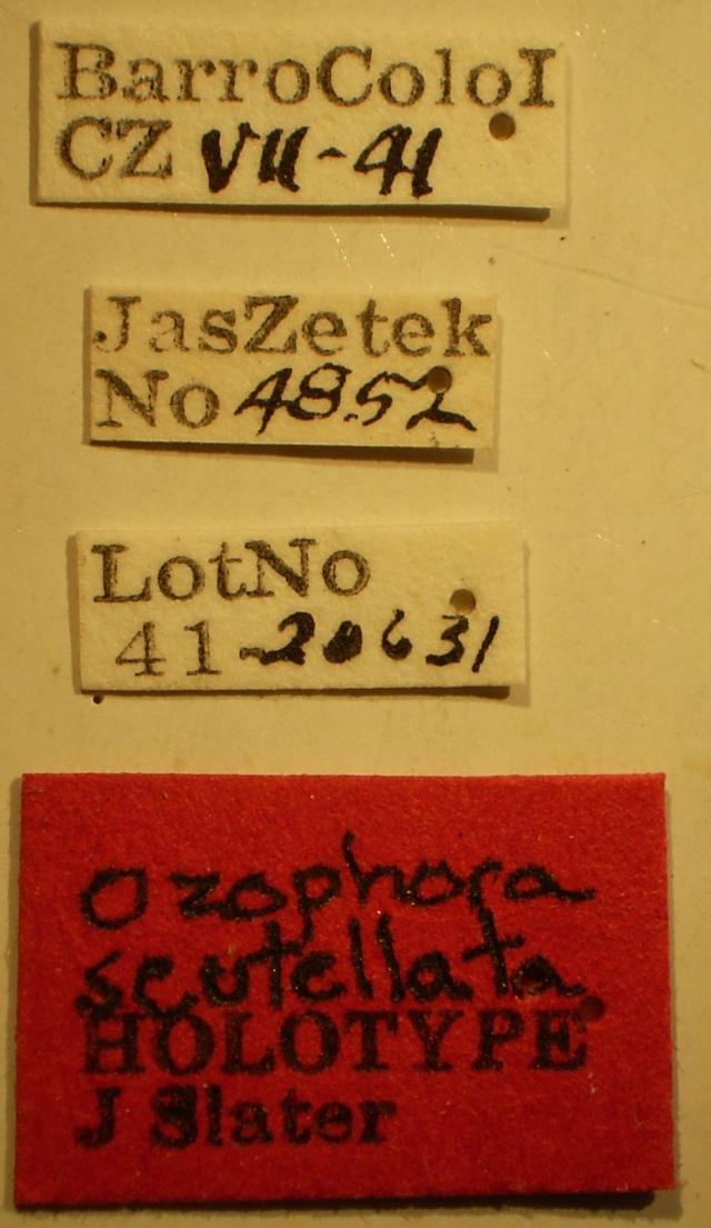Ozophora scutellata - Holotype Labels (NMNH) - (CC BY-NC 3.0) - Photo by Pablo M. Dellapé with permission from the National Museum of Natural History (NMNH), Smithsonian Institution, Washington, D.C.