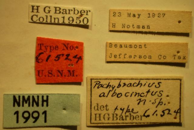 Pachybrachius albocinctus - Holotype Labels (NMNH) - (CC BY-NC 3.0) - Photo by Pablo M. Dellapé with permission from the National Museum of Natural History (NMNH), Smithsonian Institution, Washington, D.C.