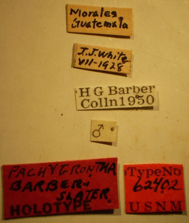 Pachygrontha barberi - Holotype Labels (NMNH) - (CC BY-NC 3.0) - Photo by Pablo M. Dellapé with permission from the National Museum of Natural History (NMNH), Smithsonian Institution, Washington, D.C.