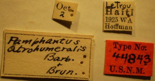 Pamphantus atrohumeralis - Holotype Labels (NMNH) - (CC BY-NC 3.0) - Photo by Pablo M. Dellapé with permission from the National Museum of Natural History (NMNH), Smithsonian Institution, Washington, D.C.