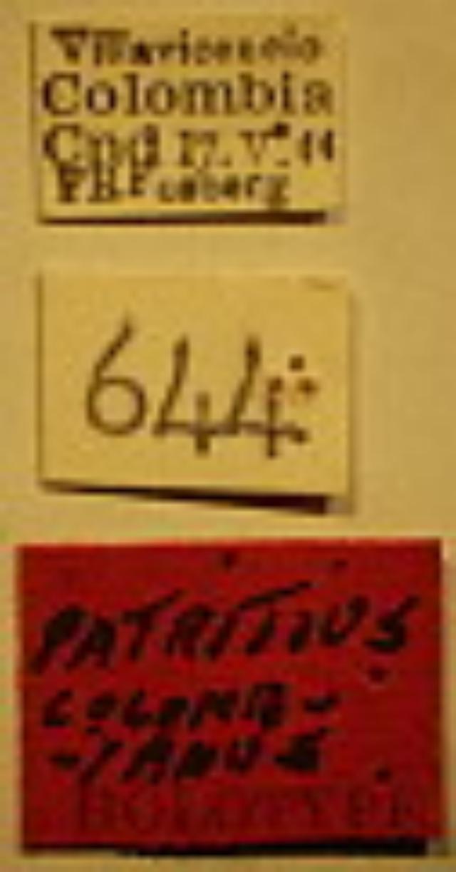 Patritius colombianus - Holotype Labels (NMNH) - (CC BY-NC 3.0) - Photo by Pablo M. Dellapé with permission from the National Museum of Natural History (NMNH), Smithsonian Institution, Washington, D.C.