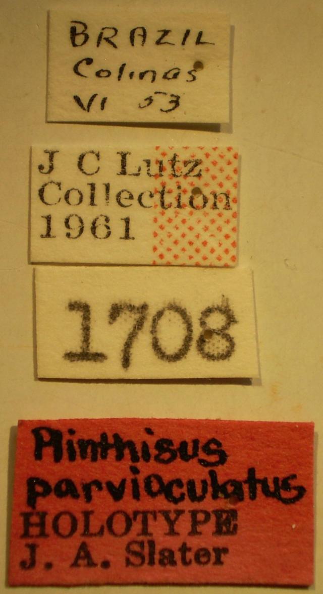 Plinthisus parvioculatus - Holotype Labels (NMNH) - (CC BY-NC 3.0) - Photo by Pablo M. Dellapé with permission from the National Museum of Natural History (NMNH), Smithsonian Institution, Washington, D.C.