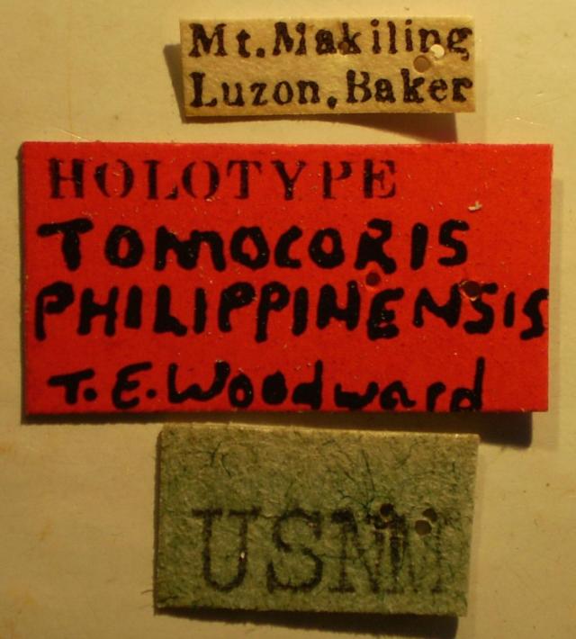 Tomocoris philippinensis - Holotype Labels (NMNH) - (CC BY-NC 3.0) - Photo by Pablo M. Dellapé with permission from the National Museum of Natural History (NMNH), Smithsonian Institution, Washington, D.C.