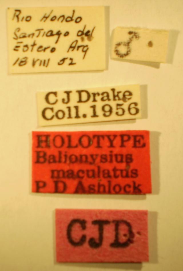 Balionysius maculatus HOLOTYPE Labels (NMNH) - (CC BY-NC 3.0) - Photo by Pablo M. Dellapé with permission from the National Museum of Natural History (NMNH), Smithsonian Institution, Washington, D.C.