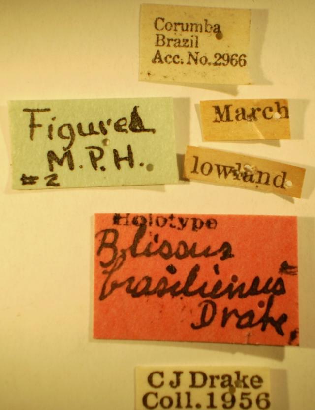 Blissus brasiliensis HOLOTYPE Labels (NMNH) - (CC BY-NC 3.0) - Photo by Pablo M. Dellapé with permission from the National Museum of Natural History (NMNH), Smithsonian Institution, Washington, D.C.