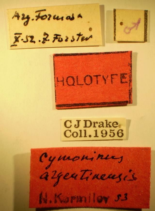 Cymoninus argentinensis HOLOTYPE Labels (NMNH) - (CC BY-NC 3.0) - Photo by Pablo M. Dellapé with permission from the National Museum of Natural History (NMNH), Smithsonian Institution, Washington, D.C.