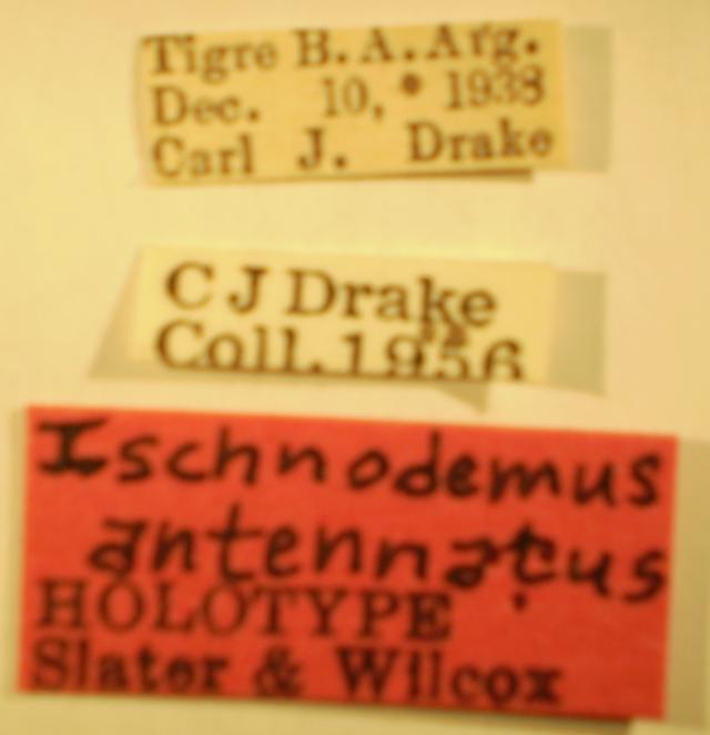 Ischnodemus antennatus HOLOTYPE Labels (NMNH) - (CC BY-NC 3.0) - Photo by Pablo M. Dellapé with permission from the National Museum of Natural History (NMNH), Smithsonian Institution, Washington, D.C.