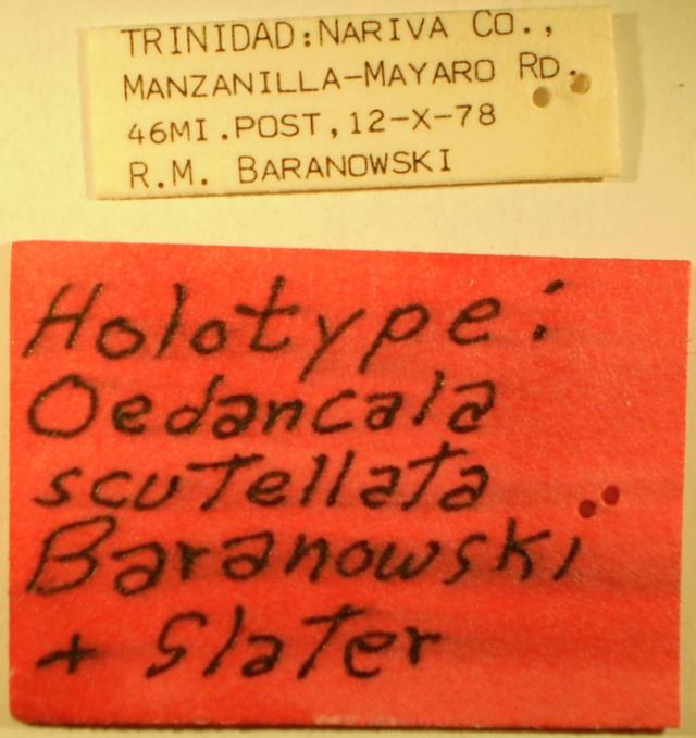 Oedancala scutellata HOLOTYPE Labels (NMNH) - (CC BY-NC 3.0) - Photo by Pablo M. Dellapé with permission from the National Museum of Natural History (NMNH), Smithsonian Institution, Washington, D.C.