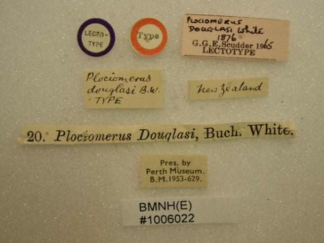 Plociomerus douglasi White,1876 Lectotype [labels] (CC BY-NC 3.0) Attribution: © The Natural History Museum. Photograph: Tristan Bantock