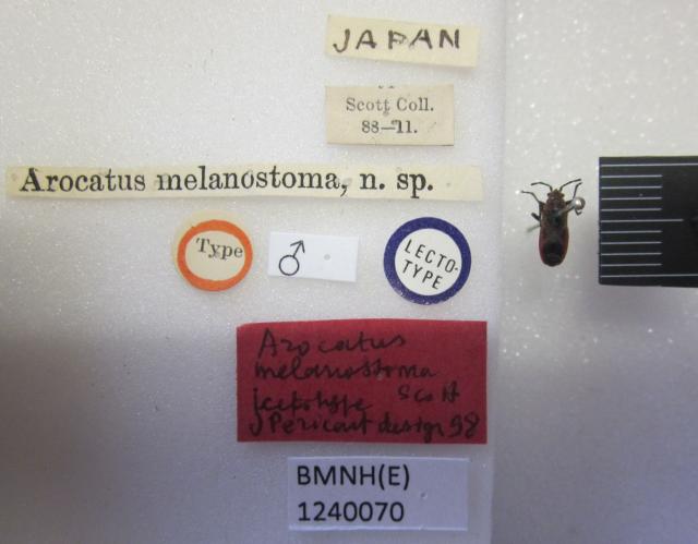 Arocatus melanostomus. Lectotype. (BMNH) - (CC BY-NC 4.0) Photo by Stuart Cole, reproduced with permission from the Natural History Museum, London, UK.