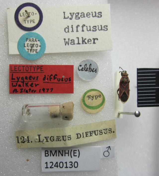 Lygaeus diffusus. Lectotype. (BMNH) - (CC BY-NC 4.0) Photo by Stuart Cole, reproduced with permission from the Natural History Museum, London, UK.