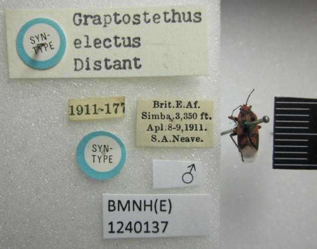 Graptostethus electus. Syntype. (BMNH) - (CC BY-NC 4.0) Photo by Stuart Cole, reproduced with permission from the Natural History Museum, London, UK.