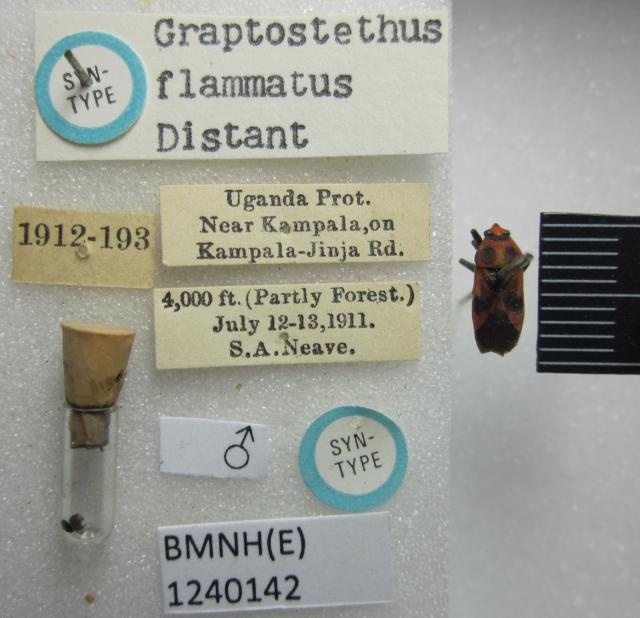 Graptostethus flammatus. Syntype. (BMNH) - (CC BY-NC 4.0) Photo by Stuart Cole, reproduced with permission from the Natural History Museum, London, UK.