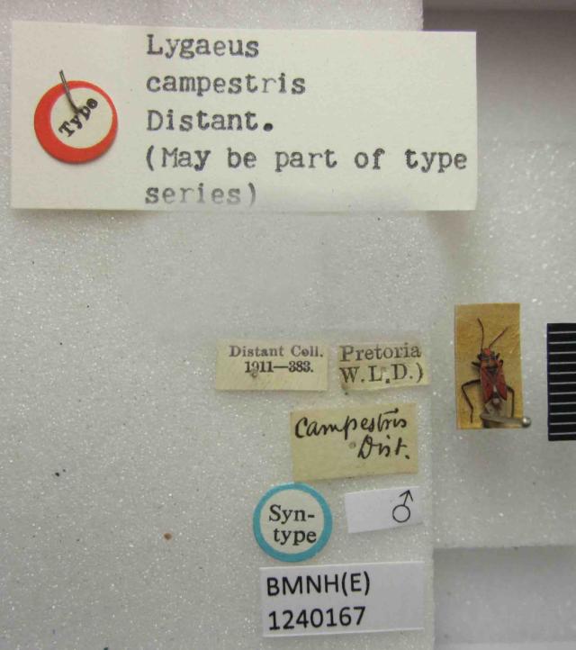 Lygaeus campestris. Syntype. (BMNH) - (CC BY-NC 4.0) Photo by Stuart Cole, reproduced with permission from the Natural History Museum, London, UK.