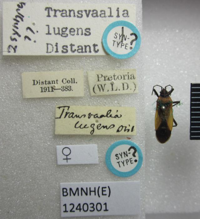 Transvaalia lugens. Syntype?. (BMNH) - (CC BY-NC 4.0) Photo by Stuart Cole, reproduced with permission from the Natural History Museum, London, UK.
