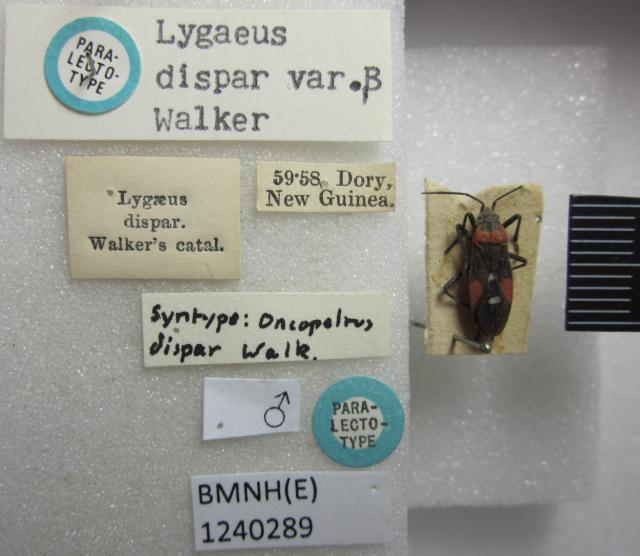 Lygaeus dispar. Paralectotype.(BMNH) - (CC BY-NC 4.0) Photo by Stuart Cole, reproduced with permission from the Natural History Museum, London, UK.