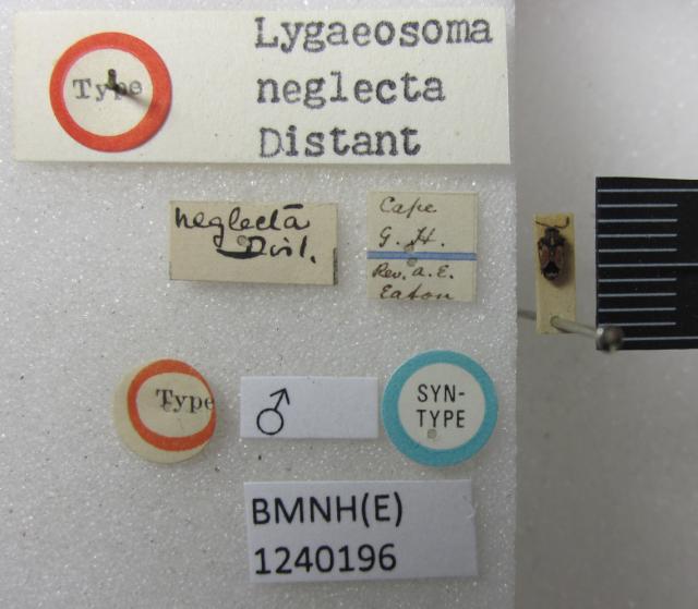 Lygaeosoma neglecta. Syntype. (BMNH) - (CC BY-NC 4.0) Photo by Stuart Cole, reproduced with permission from the Natural History Museum, London, UK.